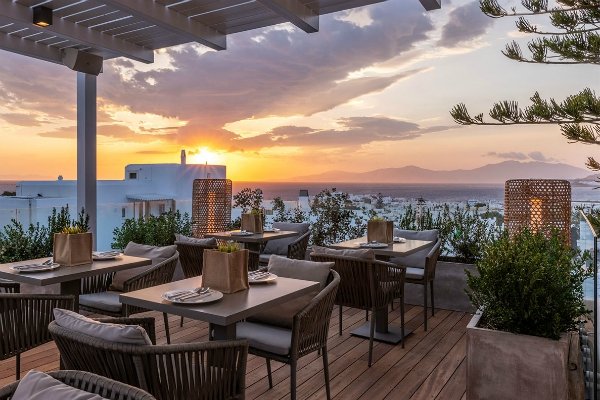 White-washed walls and wooden beams, winding staircases and shaded terraces, a glistening turquoise pool, and the kaleidoscope of vibrant pinks and greens in our garden give rise to a relaxing retreat. From here, guests can rest, indulge in fresh, bio-sensitive food at our The Terrace restaurant, prepare to venture out into the maze of Mykonos, or simply soak up the sun poolside.
