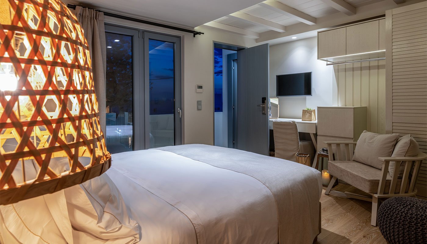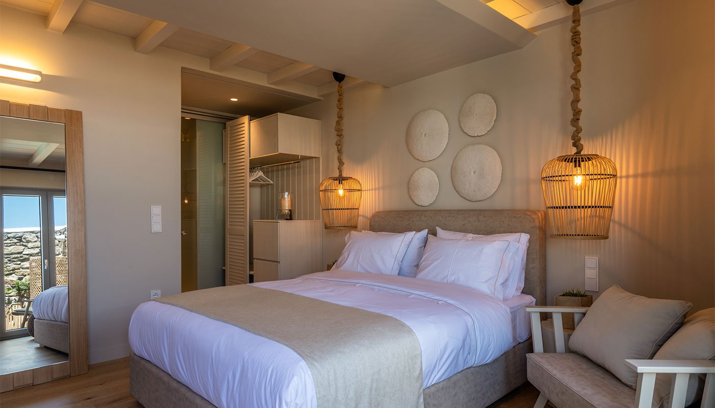 Ideal for couples looking to relax, and experience Mykonos up close and personal, our Standard Suites measure a generous 23m², making them perfect bases from which to venture off in discovering the island’s bustling beaches, historic landmarks, and enlivening feel-good atmosphere.